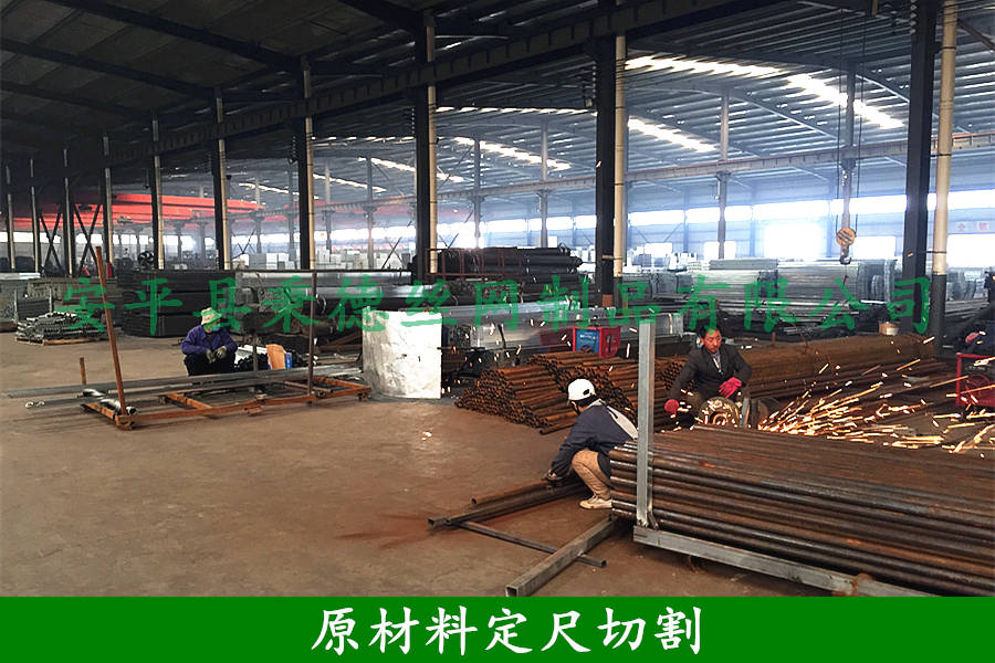 监狱护栏网制作工艺:护栏网预直丝、裁剪、预弯、焊接、检验、置框、破坏性实验、美化(PE、PVC、热浸)、包装、入库。