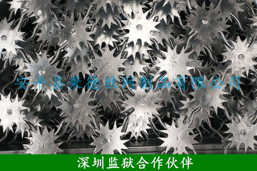 6、特点:如果在监狱护栏网顶部加装刀片刺丝、刀片刺绳后又很好的增强了安全防护性能。采用电镀、热镀、喷塑、浸塑等防腐形式,具有很好的抗老化、抗晒、耐候等特点。其产品造型美观、花色多样,既起到围栏作用,又起到美化作用。由于具有安全性高、防攀爬能力好,网片连接方式采用特制SBS紧扣件,有效防止人为的破坏性拆卸,横向四道折弯加强筋,使网面强度显著增加。